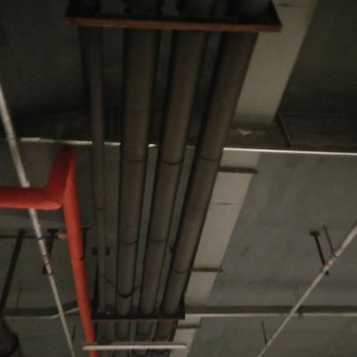4、打眼固定管線應(yīng)打眼加塞木楔用銅線及管卡固定。避免在地面開(kāi)槽布管,應(yīng)將管線安裝于吊頂內(nèi)并做保溫處理,這樣有利于以后維修及預(yù)防吊頂內(nèi)管線凍裂或凝露滴水。